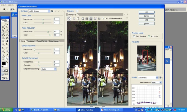 處理時可同時比較使用前後雜訊的差異(相本有較大的照片可比較)